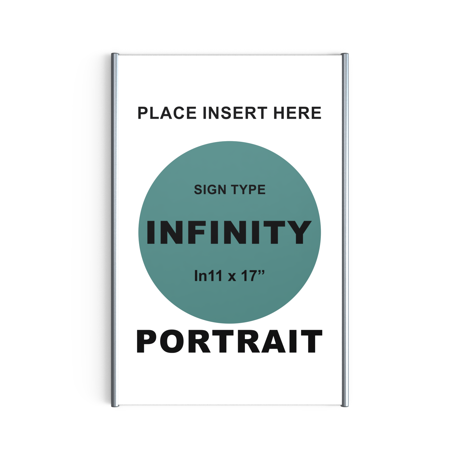• Infintiy11 (11.51" wide) aluminum sign holder extrusion ; Insert Size 11"/279mm x 8 - 17"h, Clear anodized.