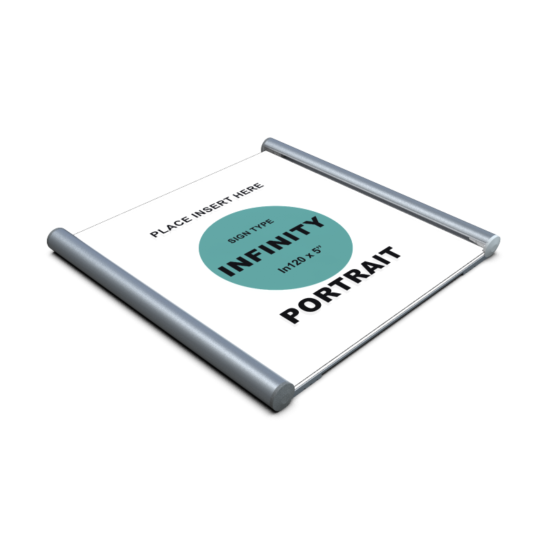 • Infinity120 (5.12" wide) aluminum sign holder extrusion ; Insert Size 4.61"/117mm 6 - 12"L. Clear anodized.