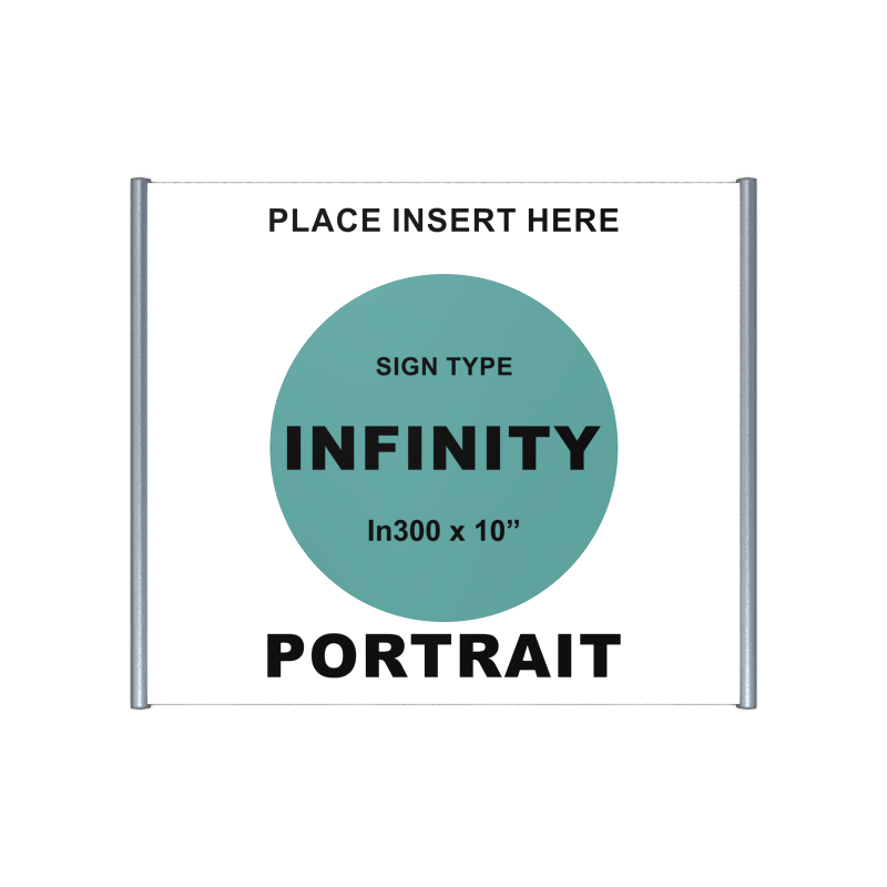 • Infinity300 (12.24" wide) aluminum sign holder extrusion ; Insert Size 11.69"/297mm x 8 - 24"h., Clear anodized.