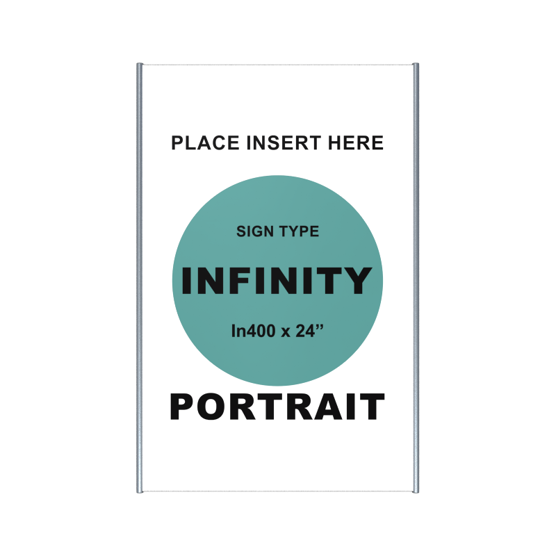 • Infinity400 (15.87" wide) aluminum sign holder extrusion : Insert Size 15.61"/397mm x 8 - 24"h., Clear anodized.