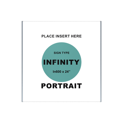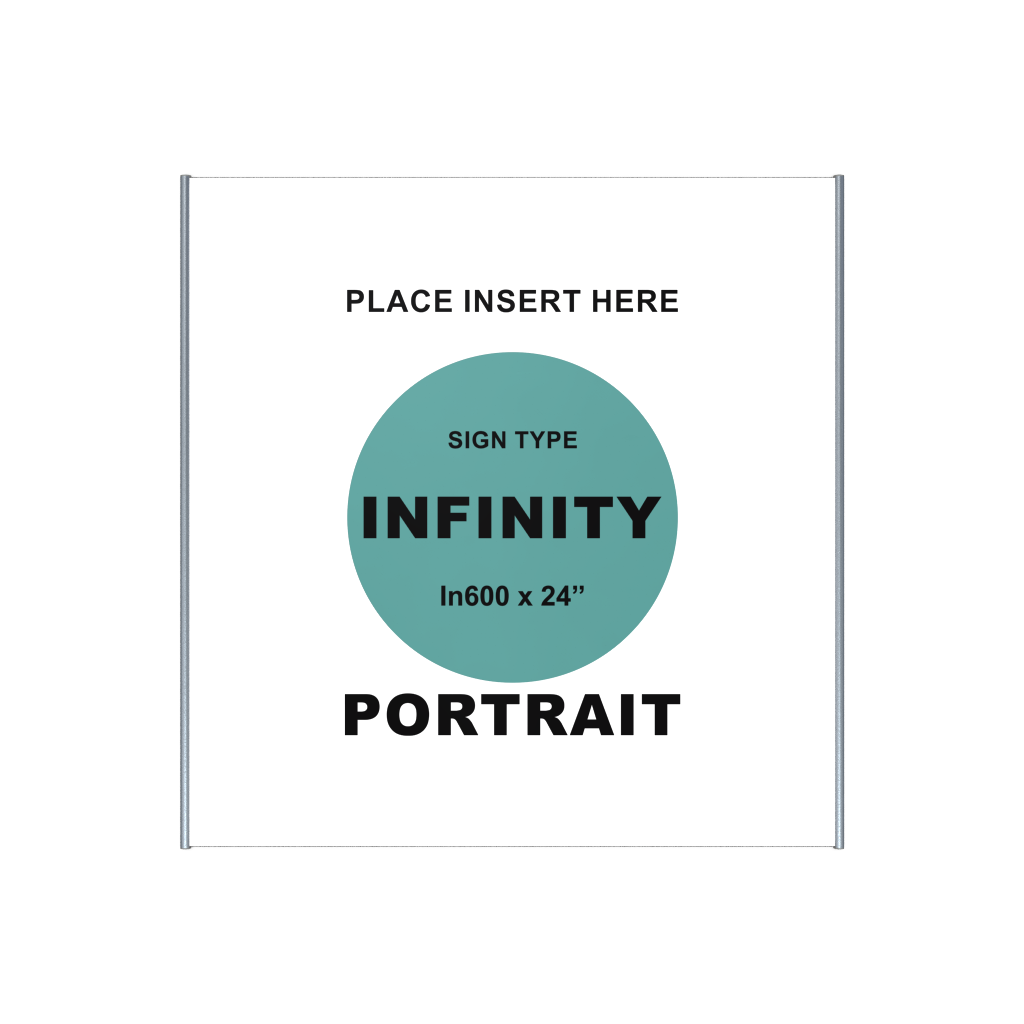 • Infinity600 (23.78" wide) aluminum sign holder extrusion ; Insert Size 23.52"/598mm x 12" - 36"h., Clear anodized.