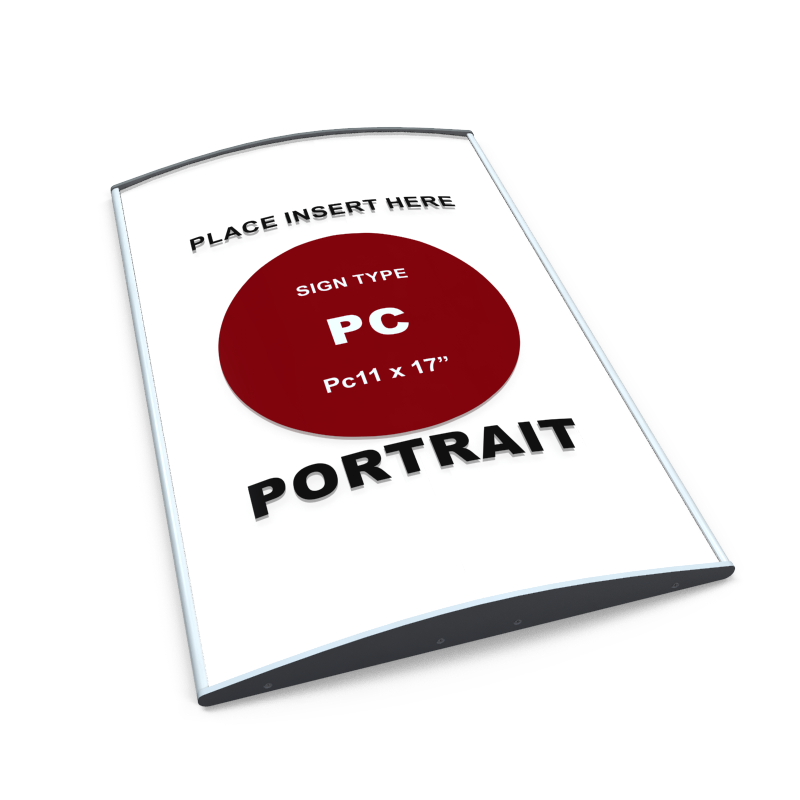 • PC11 (11.10" wide) aluminum sign holder extrusion ; Insert Size 11"/279mm x 8.5 - 17"h. This sign frame is made from 2 profiles & does not have a seam free face , Clear anodized.