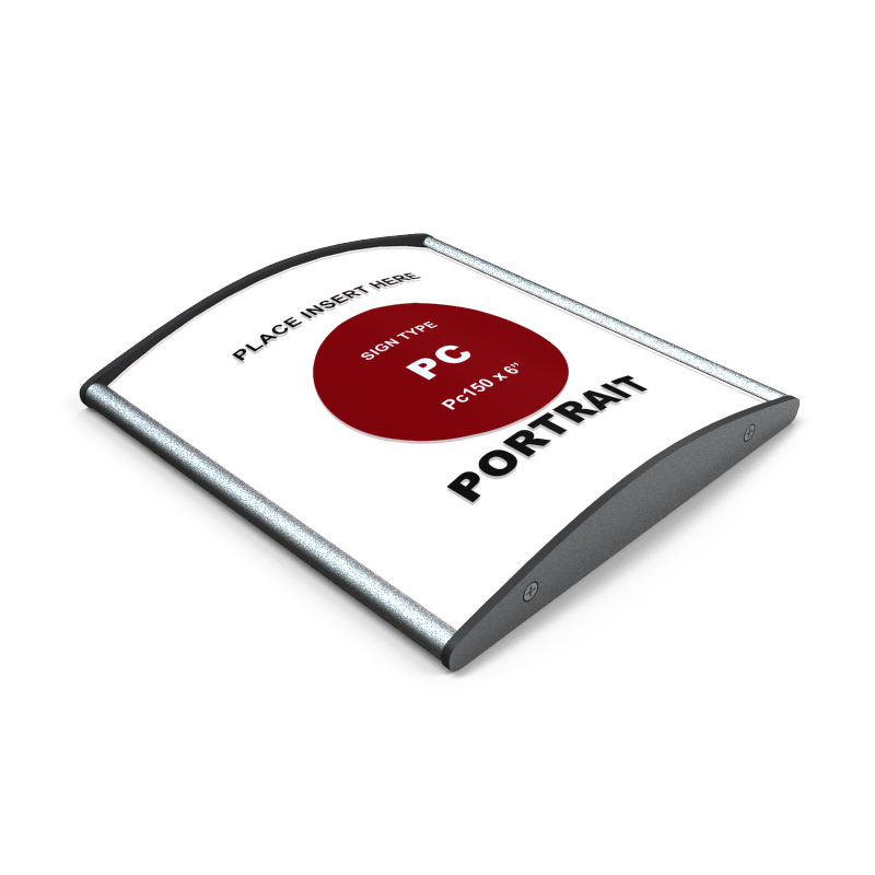 • PC150 (5.9" wide) aluminum sign holder extrusion ; Insert Size 5.78"/147mm x 6 - 12"h., Clear anodized.
