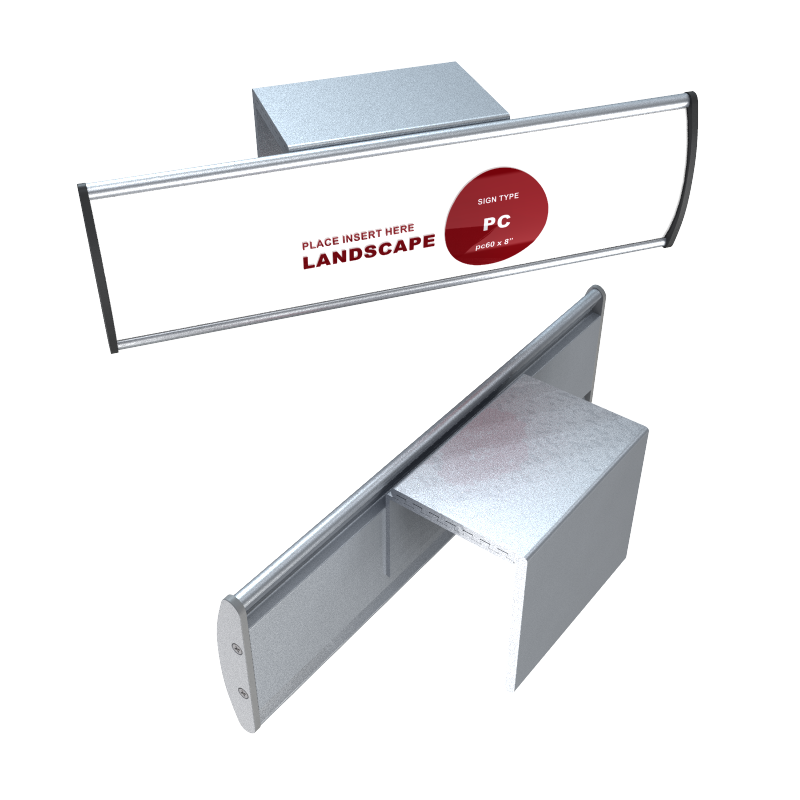 • PC60 (2.36" wide) aluminum sign holder extrusion ; Clear anodized, Insert Size 2.26"/58mm x 6 - 12"L.