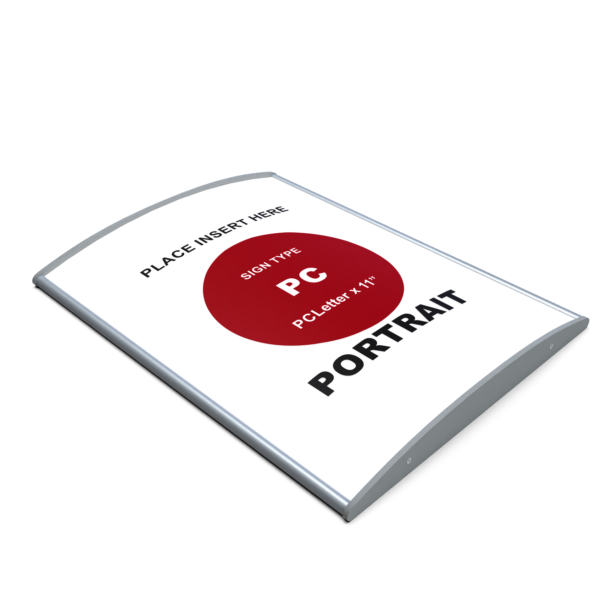 • PC-Letter (8.7" wide) aluminum sign holder extrusion ; Insert Size 8.53"/ 217mm x 6 - 12"h, Clear anodized.