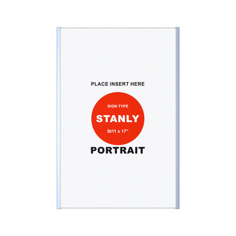 • ST11 (11.51" wide) aluminum sign holder extrusion ; Insert Size 11"/279mm x 8 - 17"h, Clear anodized.